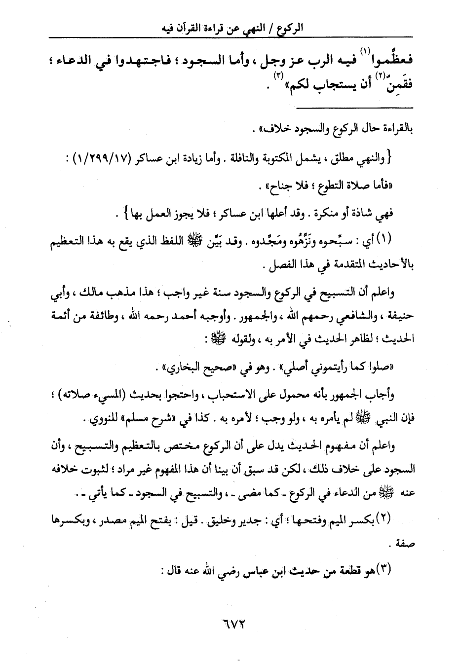 عنه صَلَّى اللَّهُ عَلَيْهِ وَسَلَّمَ من الدعاء في الركوع - كما مضى -، والتسبيح في السجود - كما يأتي -.