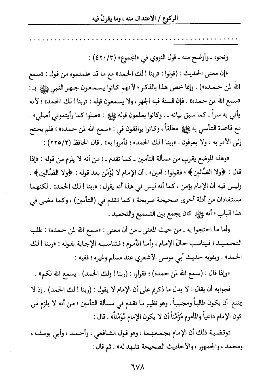 " إن معنى الحديث: (قولوا: " ربنا! لك الحمد " مع ما قد علمتموه من قول: " سمع