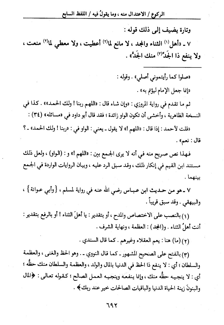 7- " أهل (1) الثناء والمجد، لا مانع لما (2) أعطيت، ولا معطي لما (2) منعت،