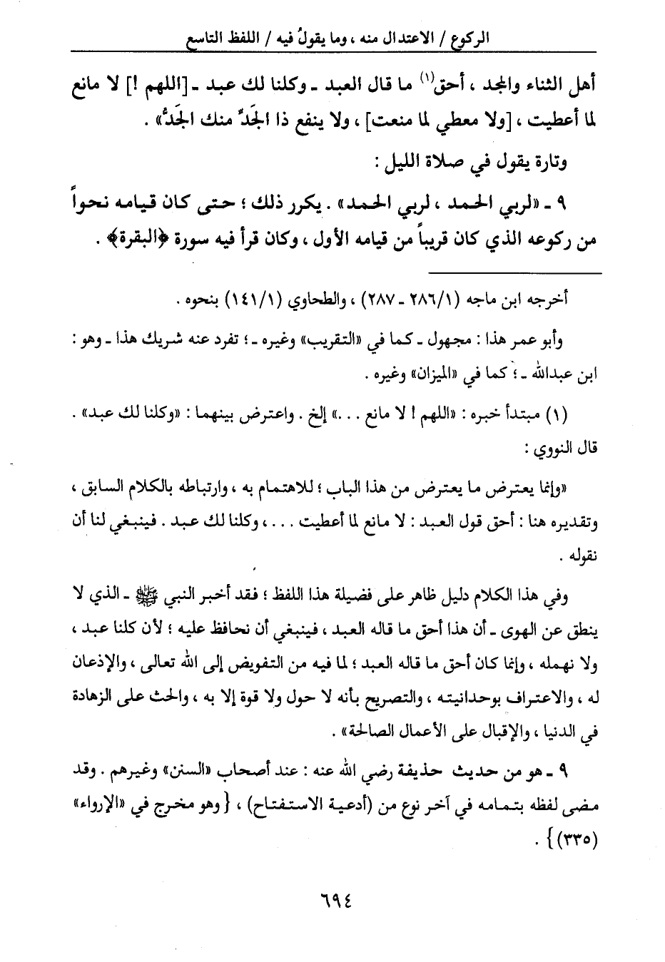 9- " لربي الحمد، لربي الحمد ". يكرر ذلك؛ حتى كان قيامه نحواً