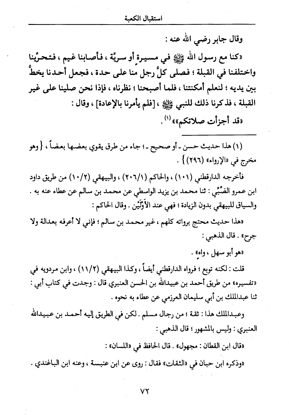 القبلة، فذكرنا ذلك للنبي صَلَّى اللَّهُ عَلَيْهِ وَسَلَّمَ، [فلم يأمرنا بالإعادة] ، وقال: