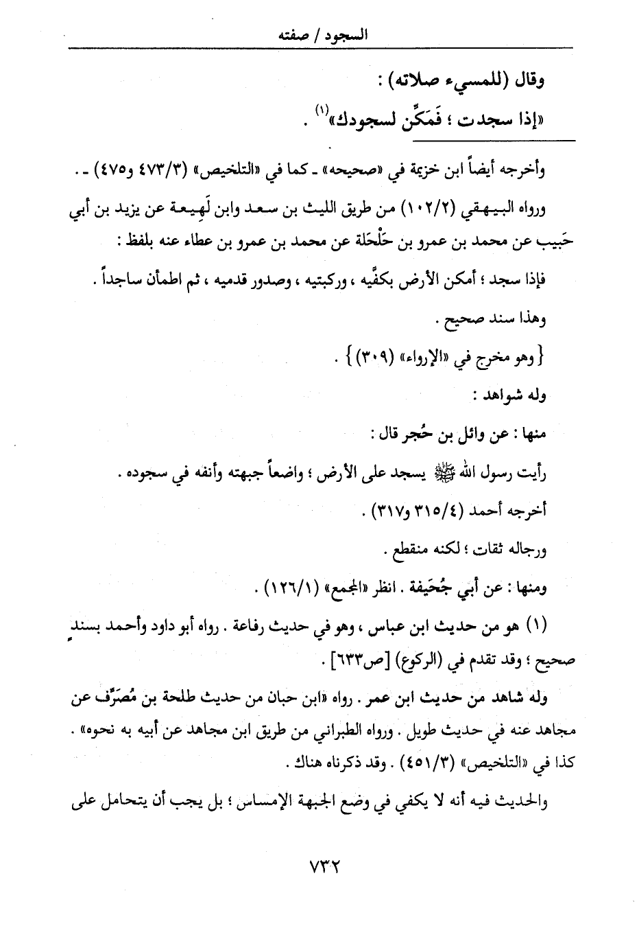 " إذا سجدت؛ فَمَكِّن لسجودك " (1) .