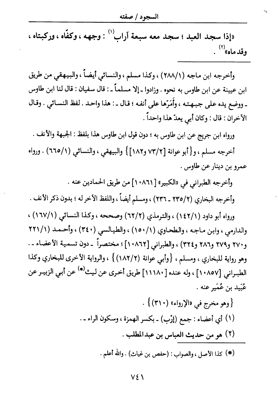 " إذا سجد العبد؛ سجد معه سبعة آراب (1) : وجهه، وكفّاه، وركبتاه،