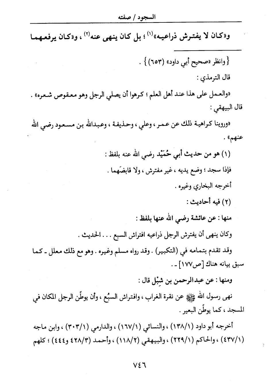 و " كان لا يفترش ذراعيه " (1) ؛ بل كان ينهى عنه (2) ، و " كان يرفعهما