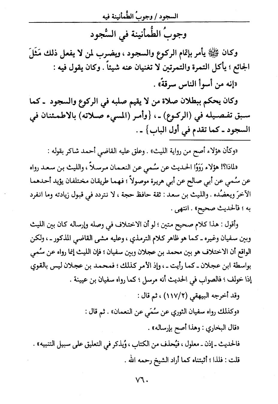 سبق تفصيله في (الركوع) -، {وأمر (المسيء صلاته) بالاطمئنان في