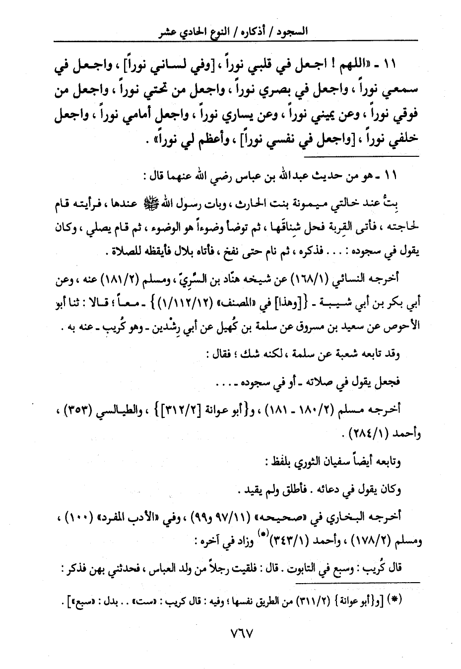11- " اللهم! اجعل في قلبي نوراً، [وفي لساني نوراً] ، واجعل في