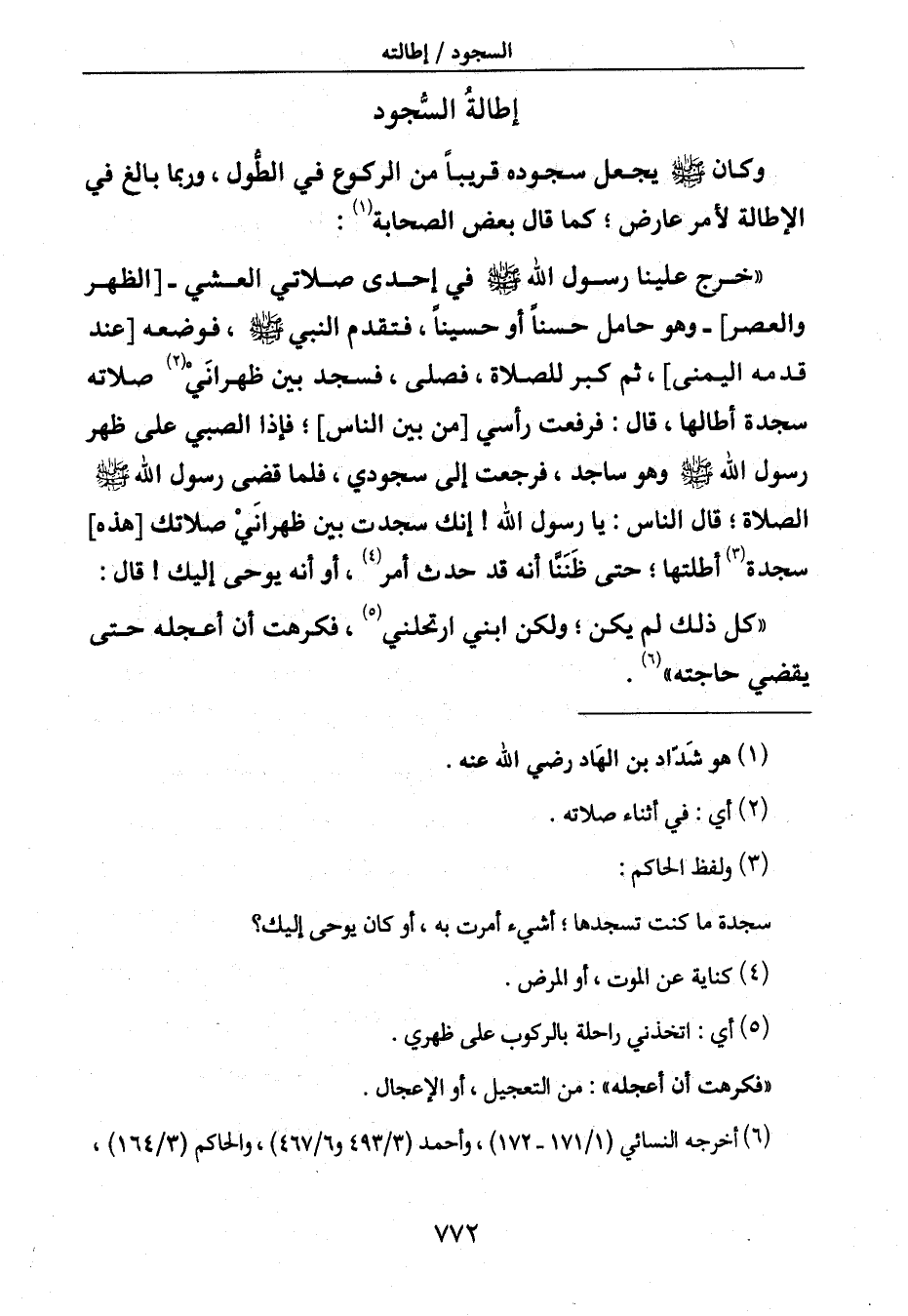 رسول الله صَلَّى اللَّهُ عَلَيْهِ وَسَلَّمَ وهو ساجد، فرجعت إلى سجودي، فلما قضى رسول الله صَلَّى اللَّهُ عَلَيْهِ وَسَلَّمَ