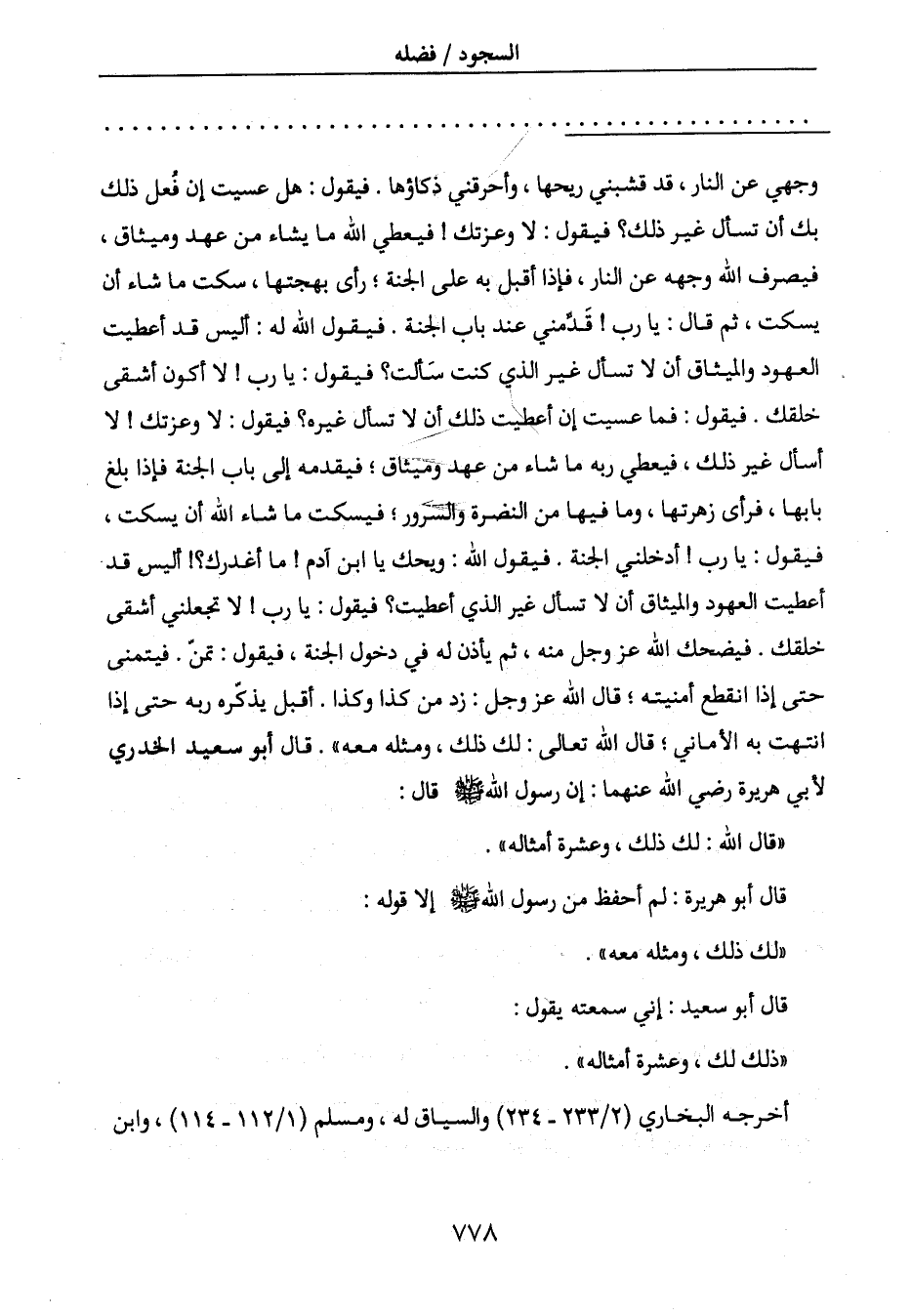 انتهت به الأماني؛ قال الله تعالى: لك ذلك، ومثله معه ". قال أبو سعيد الخدري