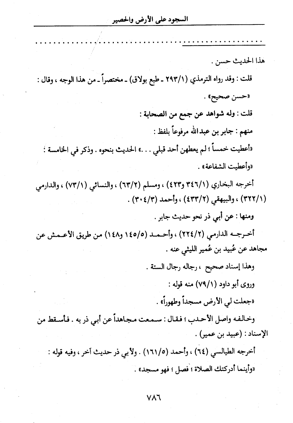 " جعلت لي الأرض مسجداً وطهوراً ".