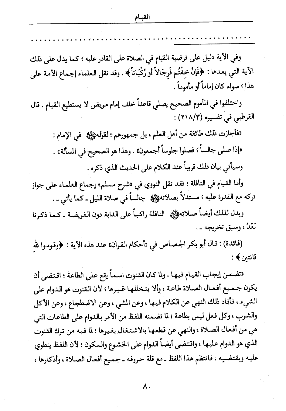 (فائدة) : قال أبو بكر الجصاص في " أحكام القرآن " عند هذه الآية: {وَقُومُوا لِلَّهِ