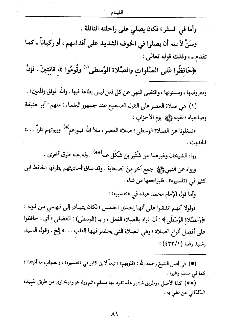 {حَافِظُوا عَلَى الصَّلَوَاتِ وَالصَّلَاةِ الوُسْطَى (1) وَقُومُوا لِلّهِ قَانِتِينَ. فَإِنْ