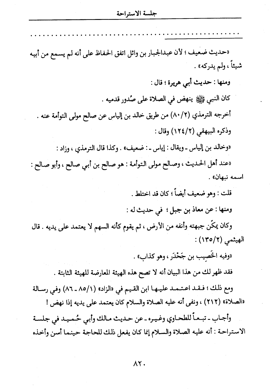 " الصلاة " (212) ، ونفى أنه عليه الصلاة والسلام كان يعتمد على يديه إذا نهض!