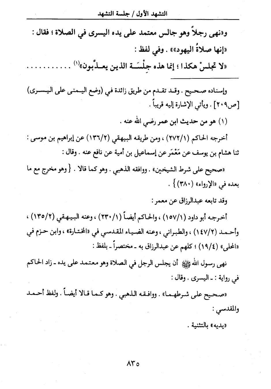 و " نهى رجلاً وهو جالس معتمد على يده اليسرى في الصلاة؛ فقال: