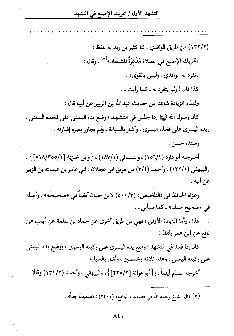 " تحريك الإصبع في الصلاة مُذْعِرَةٌ للشيطان " (*) . وقال: