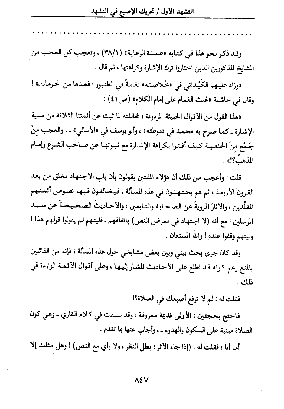 فقلت له: لم لا ترفع أصبعك في الصلاة؟!