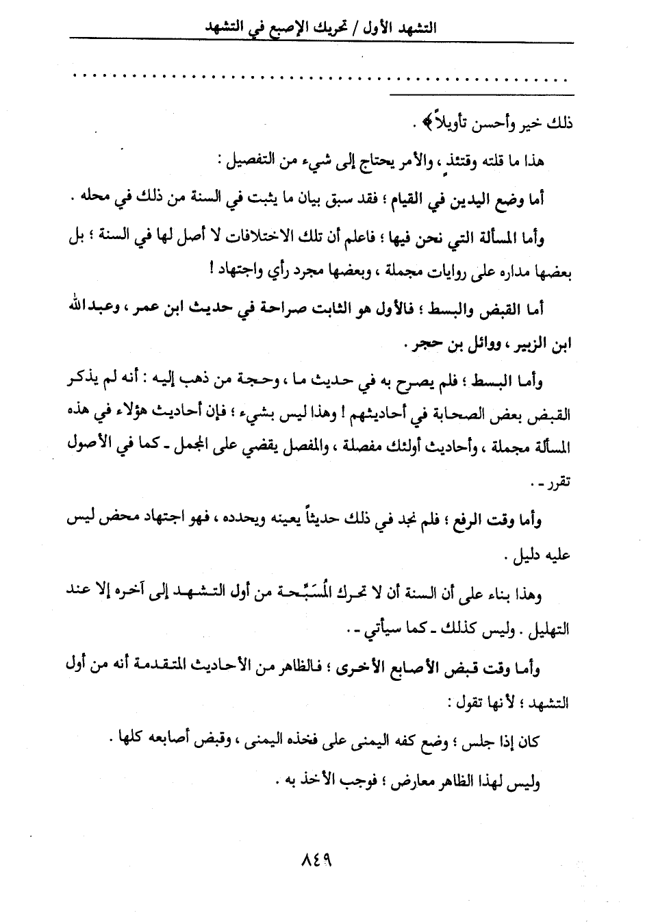 وهذا بناء على أن السنة أن لا تحرك المُسَبِّحة من أول التشهد إلى آخره إلا عند