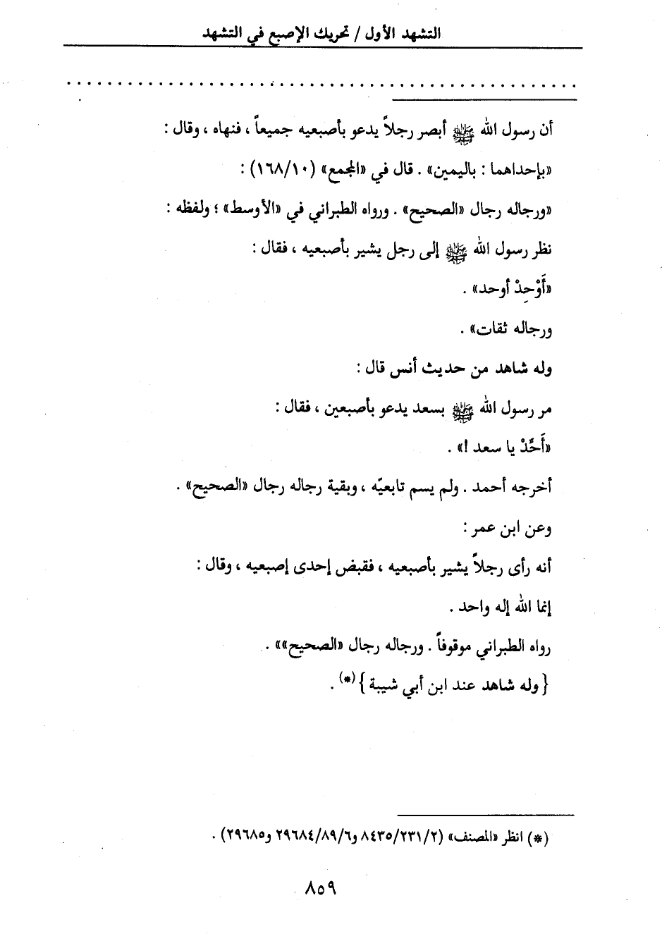 أن رسول الله صَلَّى اللَّهُ عَلَيْهِ وَسَلَّمَ أبصر رجلاً يدعو بأصبعيه جميعاً، فنهاه، وقال: