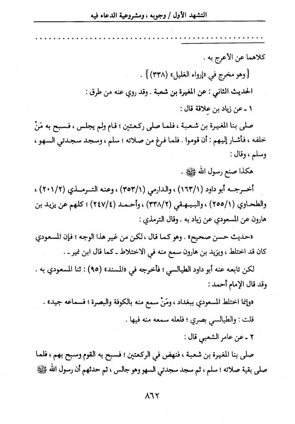 صلى بنا المغيرة بن شعبة، فنهض في الركعتين؛ فسبح به القوم وسبح بهم، فلما