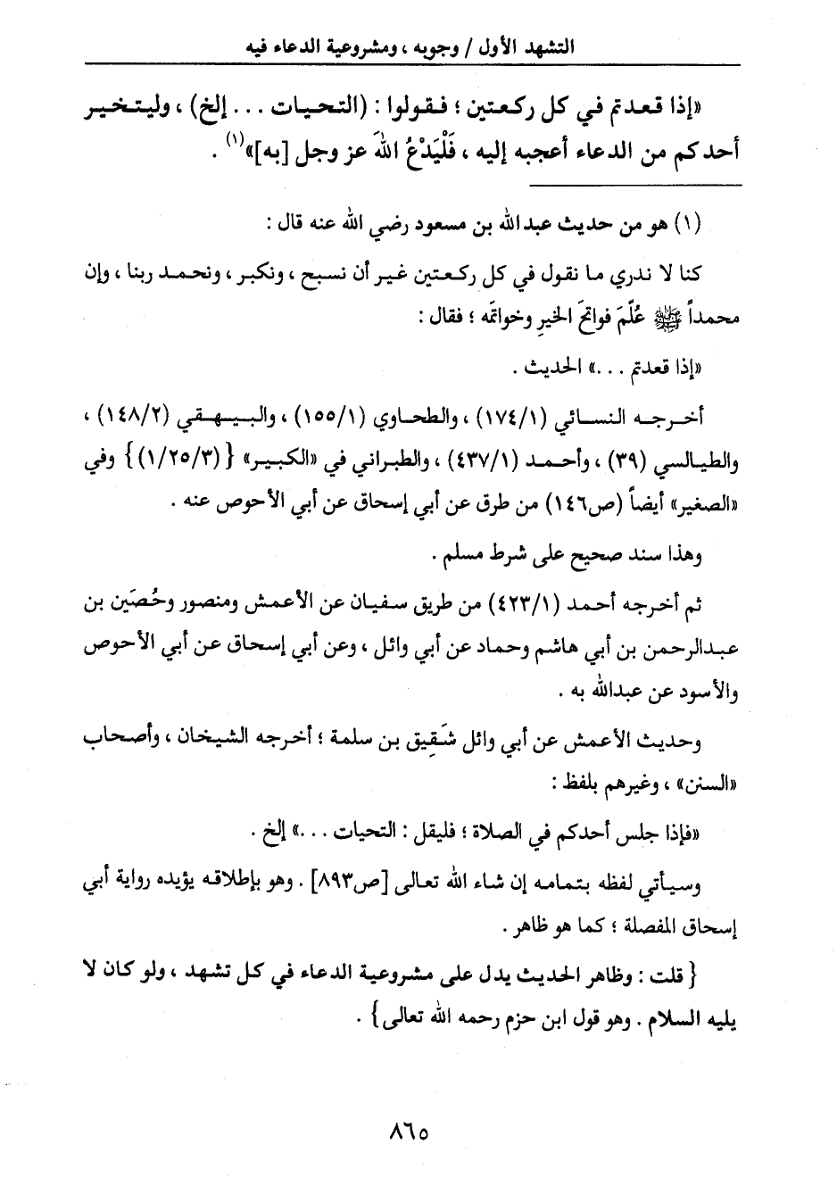 {قلت: وظاهر الحديث يدل على مشروعية الدعاء في كل تشهد، ولو كان لا