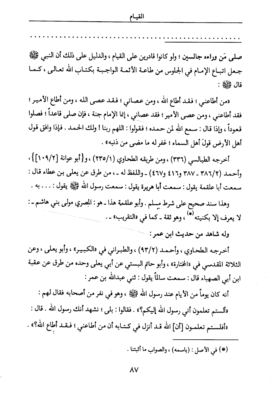 جعل اتباع الإمام في الجلوس من طاعة الأئمة الواجبة بكتاب الله تعالى، كما