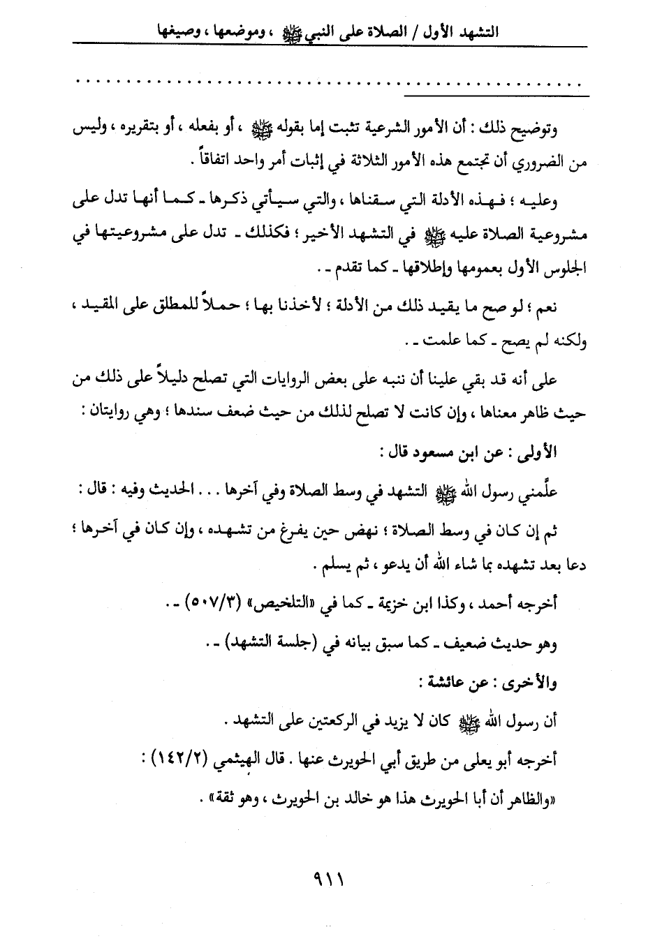 أن رسول الله صَلَّى اللَّهُ عَلَيْهِ وَسَلَّمَ كان لا يزيد في الركعتين على التشهد.