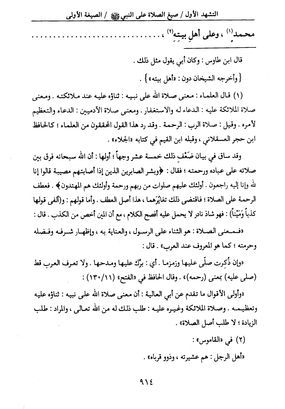 (1) قال العلماء: معنى صلاة الله على نبيه: ثناؤه عليه عند ملائكته. ومعنى