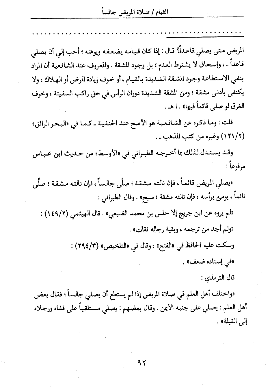 " يصلي المريض قائماً، فإن نالته مشقة؛ صلَّى جالساً، فإن نالته مشقة؛ صلَّى