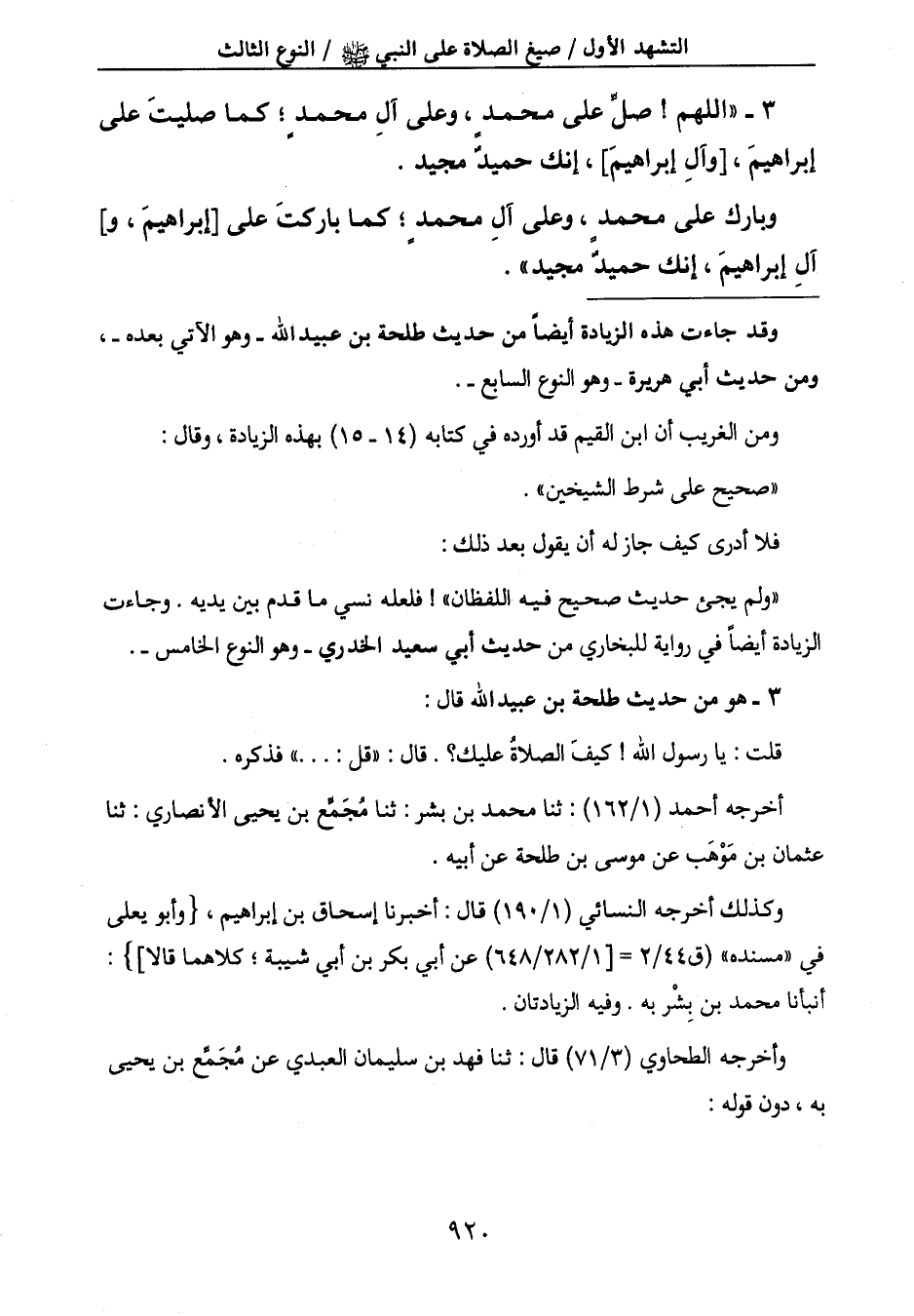 3- " اللهم! صلِّ على محمدٍ، وعلى آلِ محمدٍ؛ كما صليتَ على