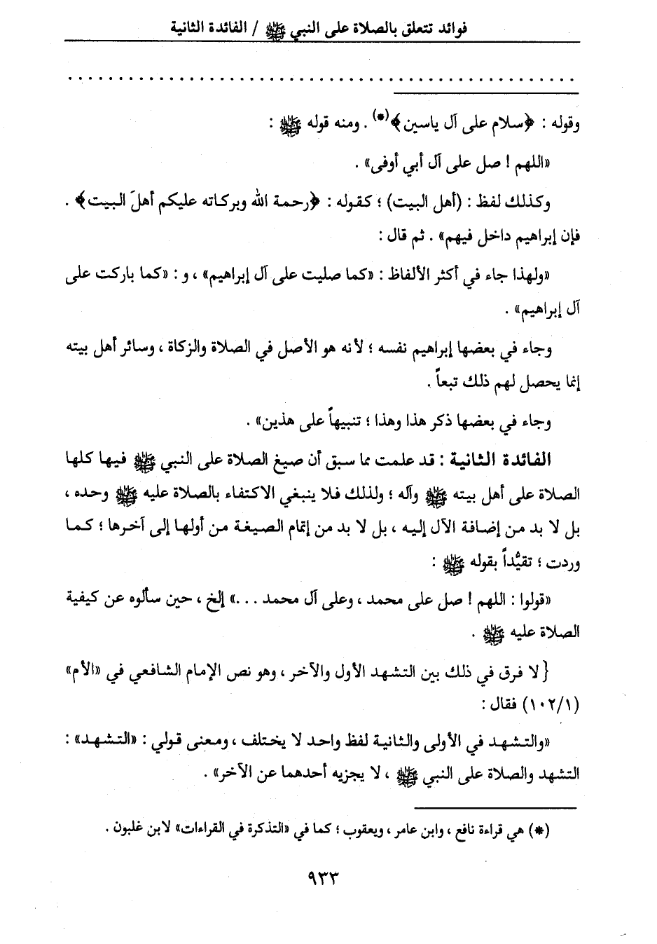 الفائدة الثانيه: قد علمت مما سبق أن صيغ الصلاة على النبي صَلَّى اللَّهُ عَلَيْهِ وَسَلَّمَ فيها كلها