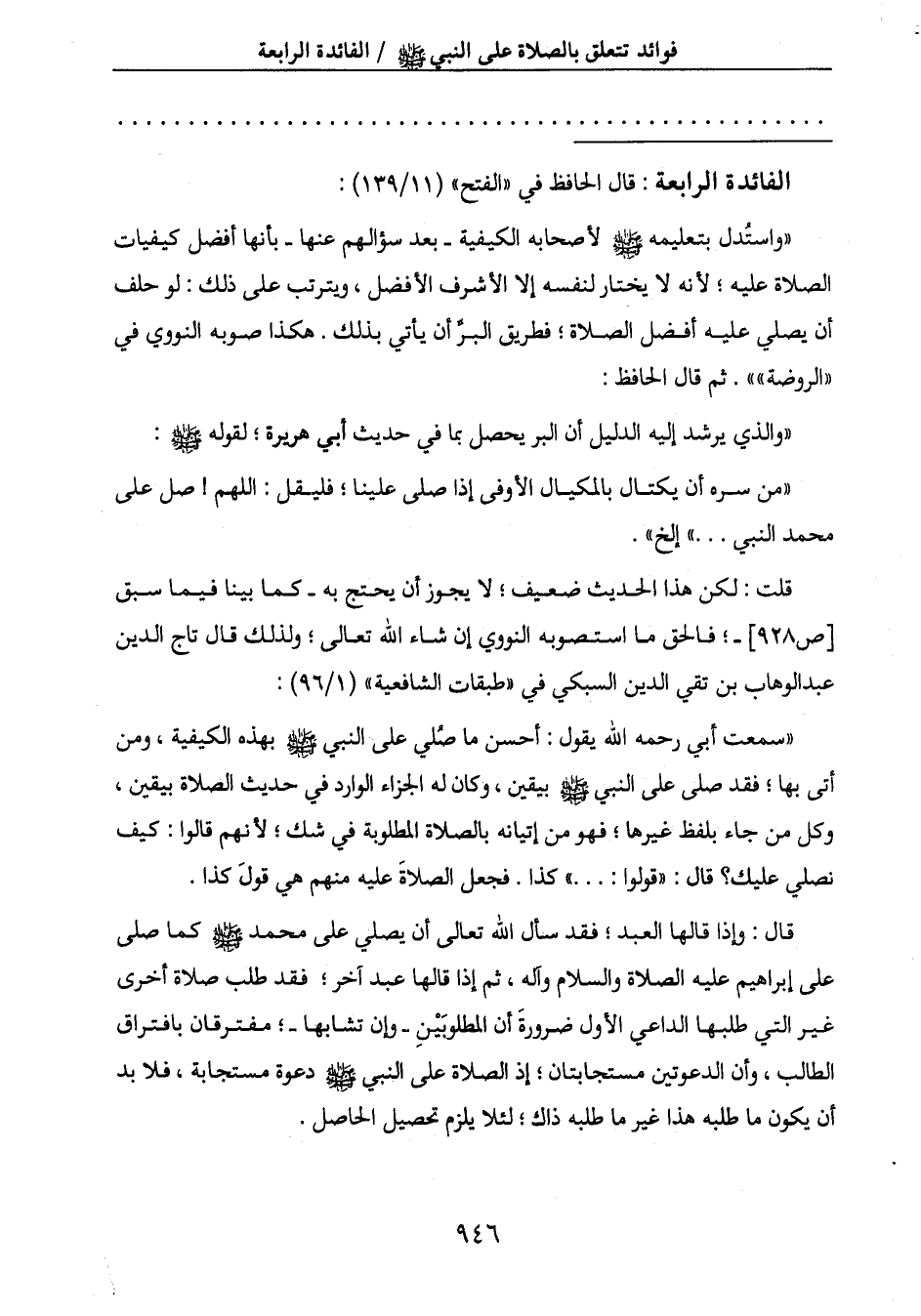 " واستُدل بتعليمه صَلَّى اللَّهُ عَلَيْهِ وَسَلَّمَ لأصحابه الكيفية - بعد سؤالهم عنها - بأنها أفضل كيفيات