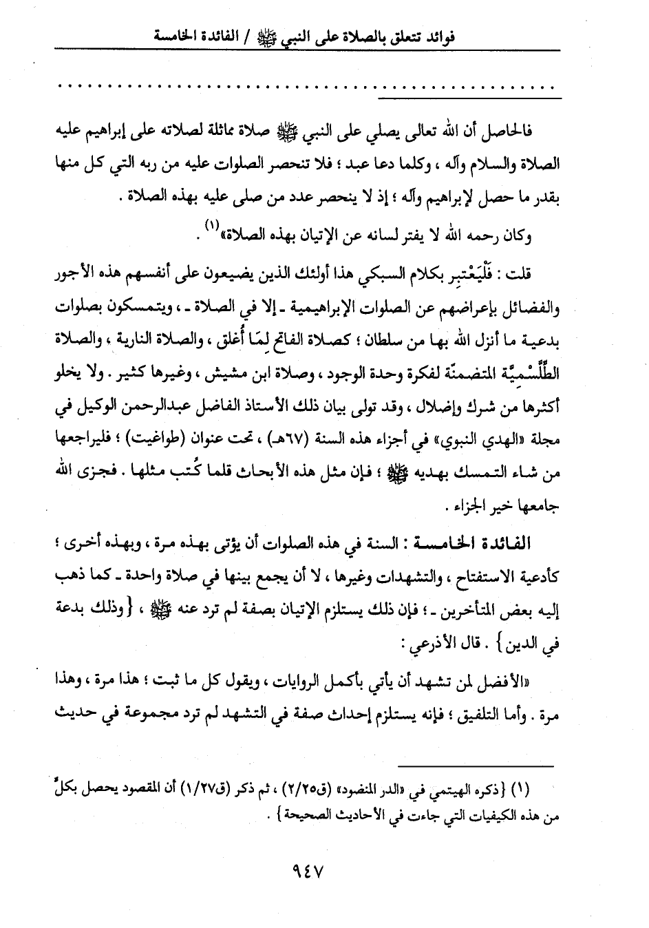 والفضائل بإعراضهم عن الصلوات الإبراهيمية - إلا في الصلاة -، ويتمسكون بصلوات