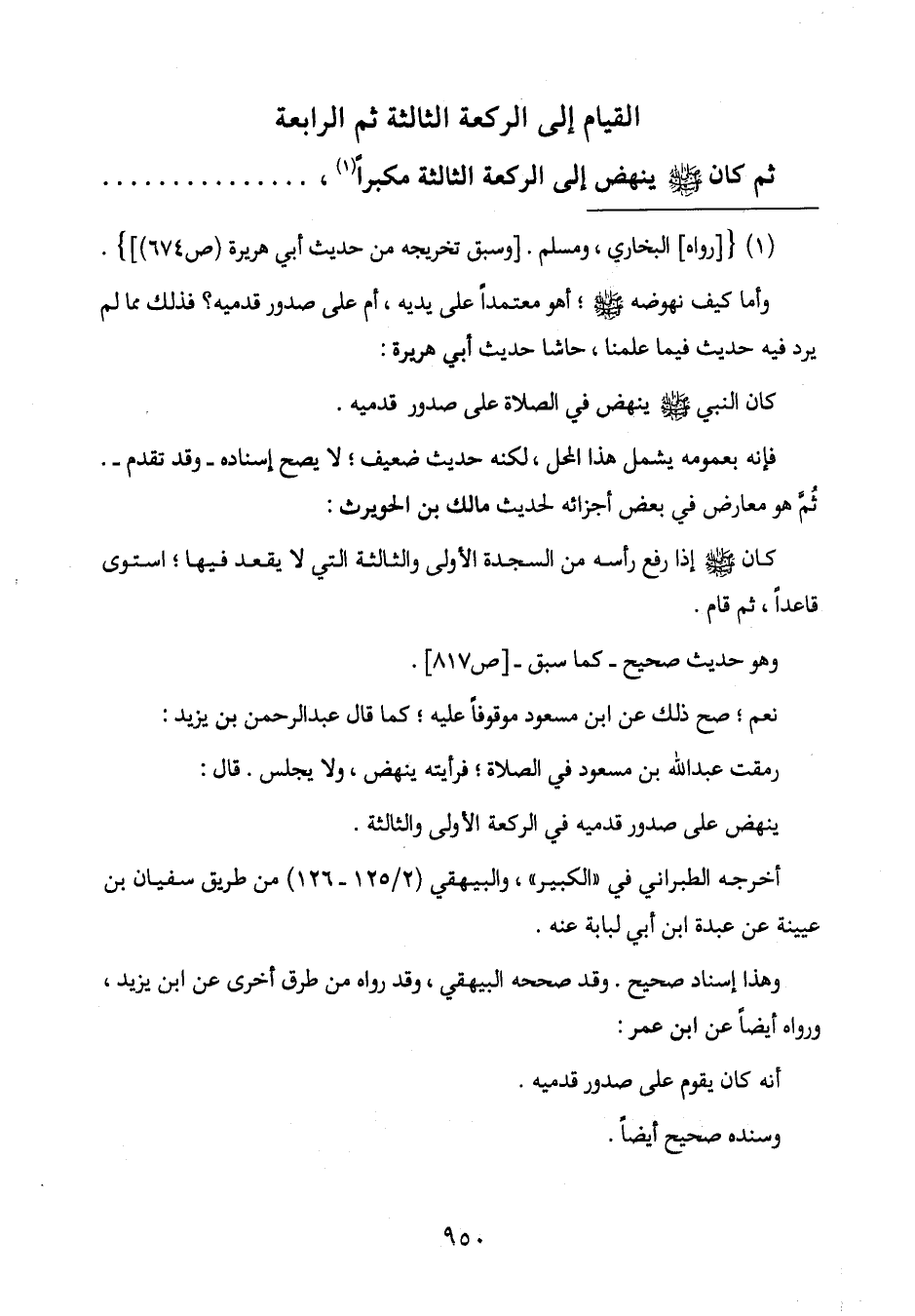كان النبي صَلَّى اللَّهُ عَلَيْهِ وَسَلَّمَ ينهض في الصلاة على صدور قدميه.
