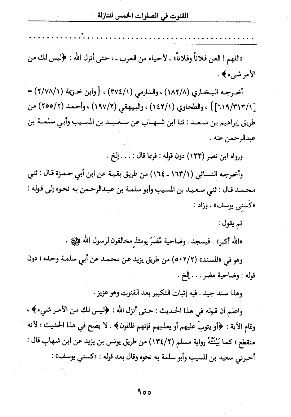 " اللهم! العن فلاناً وفلاناً " - لأحياء من العرب -، حتى أنزل الله: {لَيْسَ لَكَ مِنَ