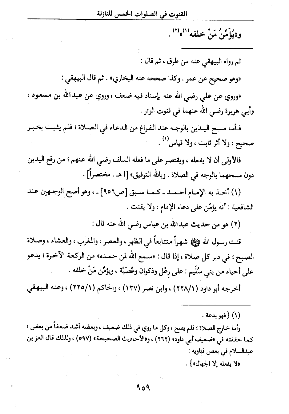 وأبي هريرة رضي الله عنهما في قنوت الوتر.