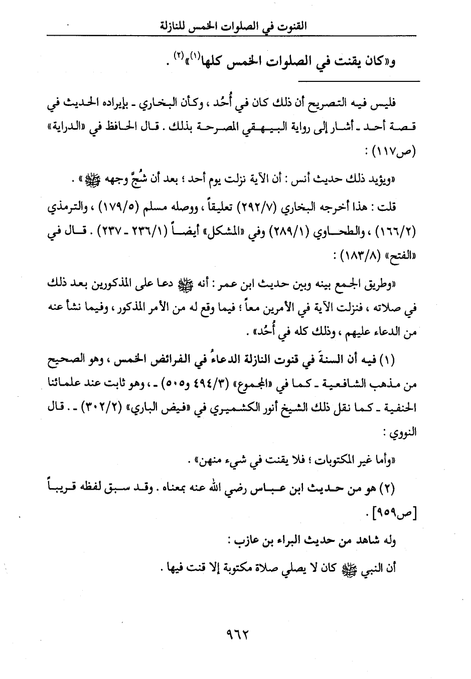 و " كان يقنت في الصلوات الخمس كلها (1) " (2) .