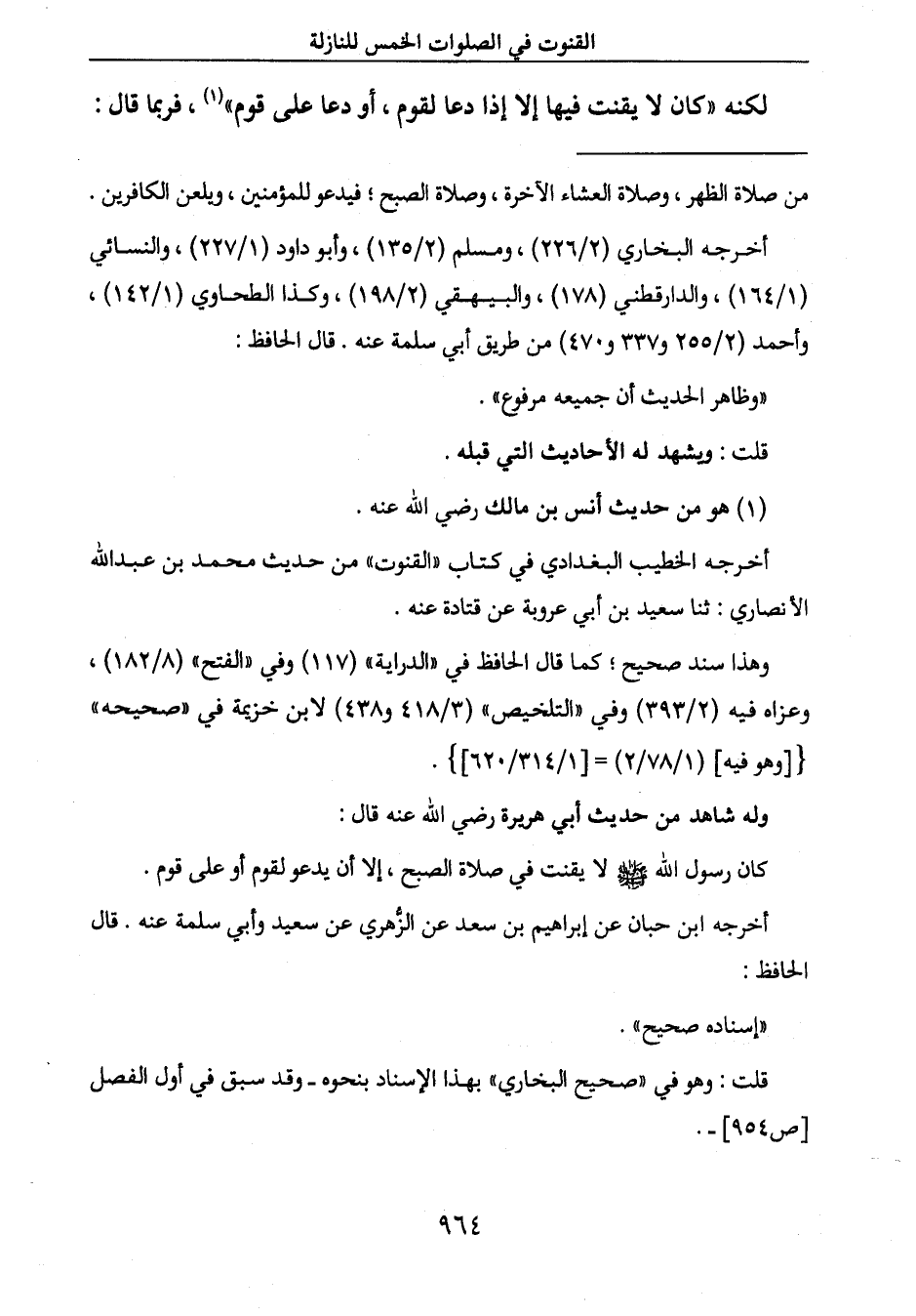 لكنه " كان لا يقنت فيها إلا إذا دعا لقوم، أو دعا على قوم " (1) ، فربما قال: