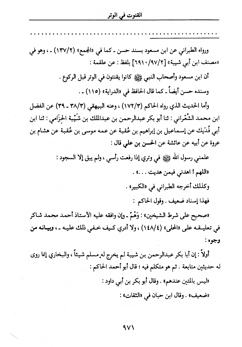 أن ابن مسعود وأصحاب النبي صَلَّى اللَّهُ عَلَيْهِ وَسَلَّمَ كانوا يقنتون في الوتر قبل الركوع.