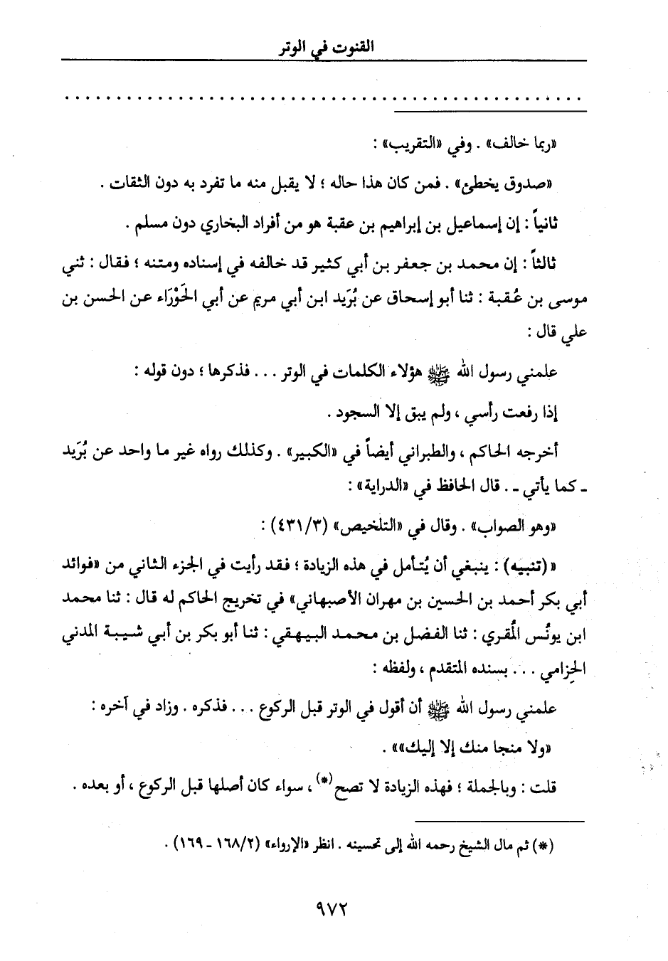 قلت: وبالجملة؛ فهذه الزيادة لا تصح (*) ، سواء كان أصلها قبل الركوع، أو بعده.