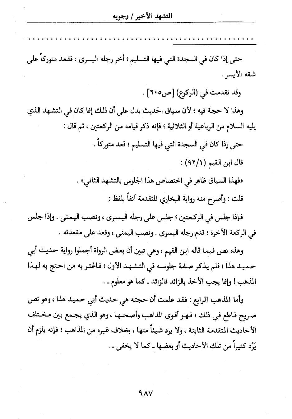 " فهذا السياق ظاهر في اختصاص هذا الجلوس بالتشهد الثاني ".