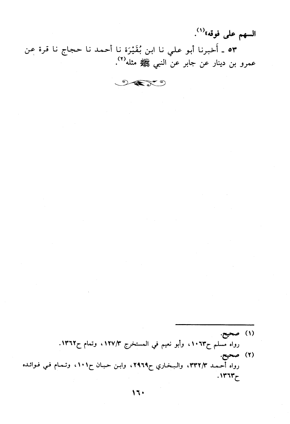 53- أخبرنا أبو علي، حَدَّثَنا ابن بقيرة، حَدَّثَنا أحمد، حَدَّثَنا حجاج، حَدَّثَنا قرة عن عمرو بن دينار عن جابر عن النبي صلى الله عليه وسلم مثله.