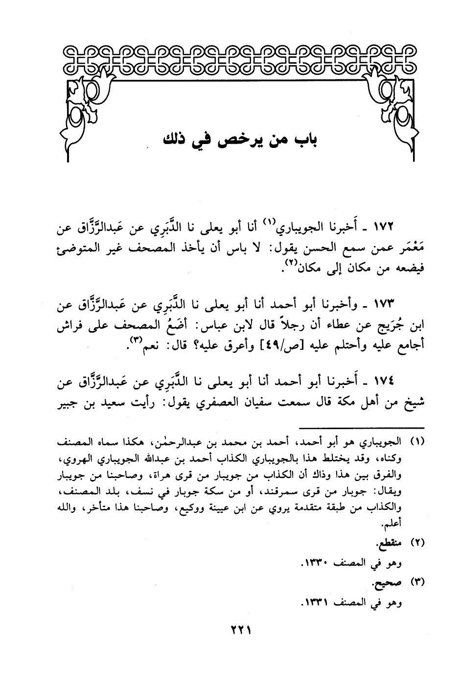 172- أخبرنا الجويباري، أخْبَرَنا أبو يعلى، حَدَّثَنا الدبري، عَن عَبد الرزاق عن معمر عمن سمع الحسن يقول: لا بأس أن يأخذ المصحف غير المتوضيء فيضعه من مكان إلى مكان.