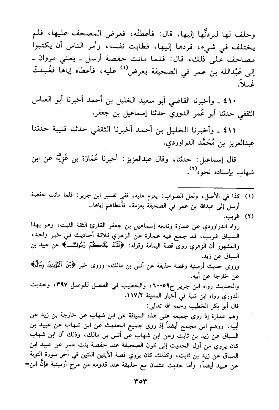 410- وأخبرنا القاضي أبو سعيد الخليل بن أحمد أخبرنا أبو العباس الثقفي حدثنا أبو عمر الدوري حدثنا إسماعيل بن جعفر