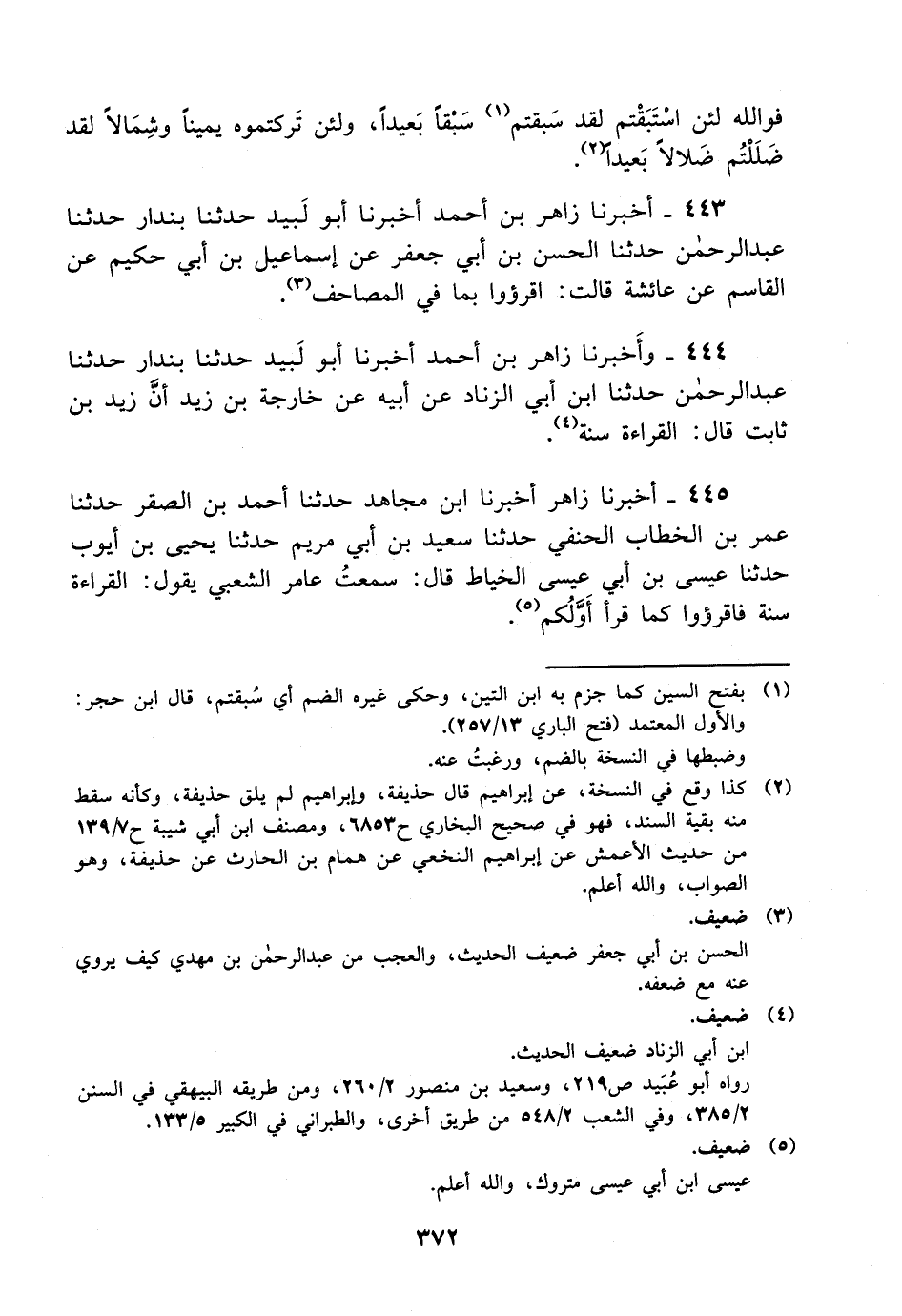 444- وأخبرنا زاهر بن أحمد أخبرنا أبو لبيد حدثنا بندار حدثنا عبد الرحمن حدثنا ابن أبي الزناد عن أبيه عن خارجة بن زيد أن زيد بن ثابت قال: القراءة سنة.