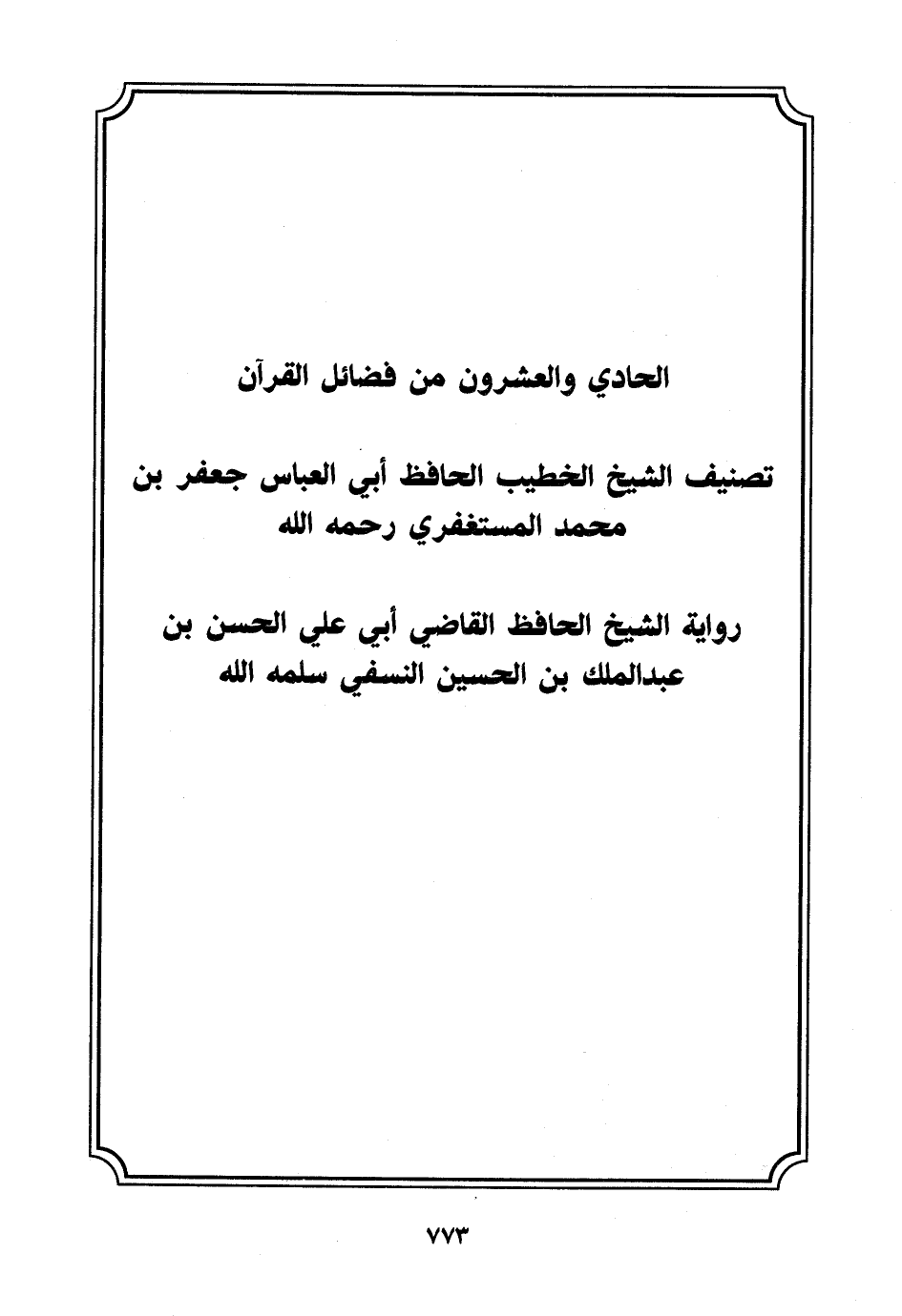 تصنيف الشيخ الخطيب الحافظ أبي العباس جعفر بن محمد المستغفري رحمه الله