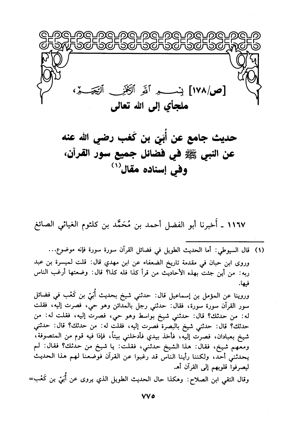 حديث جامع عَن أبي بن كعب رضي الله عنه عن النبي صلى الله عليه وسلم في فضائل جميع سور القرآن