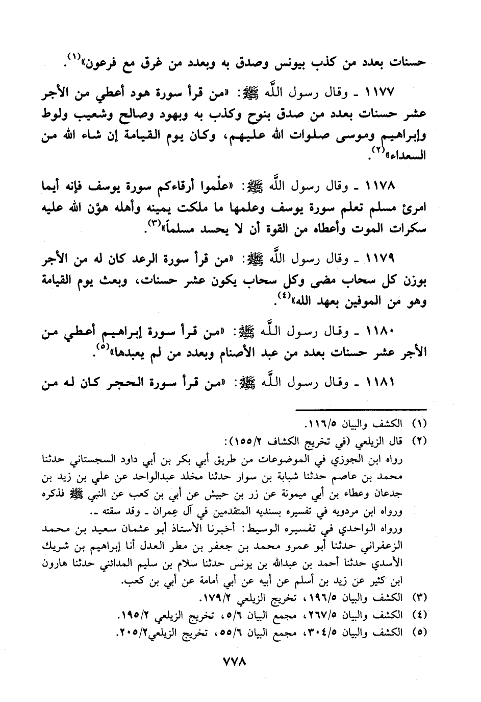 1180- وقال رسول الله صلى الله عليه وسلم: من قرأ سورة إبراهيم أعطي من الأجر عشر حسنات بعدد من عبد الأصنام وبعدد من لم يعبدها.