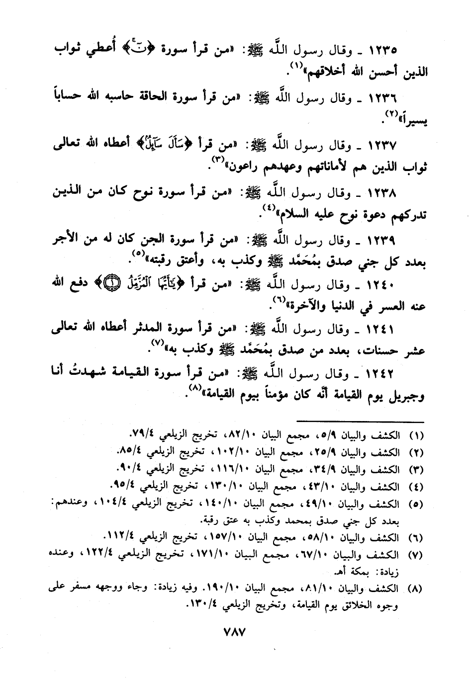 1241- وقال رسول الله صلى الله عليه وسلم: من قرأ سورة المدثر أعطاه الله تعالى عشر حسنات بعدد من صدق بمحمد صلى الله عليه وسلم وكذب به.