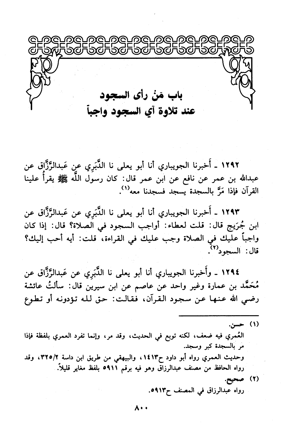 1292- أخبرنا الجويباري، أخْبَرَنا أبو يعلى، حَدَّثَنا الدبري، عَن عَبد الرزاق، عَن عَبد الله بن عمر عن نافع عن ابن عمر قال: كان رسول الله صلى الله عليه وسلم يقرأ علينا القرآن فإذا مر بالسجدة يسجد فسجدنا معه.