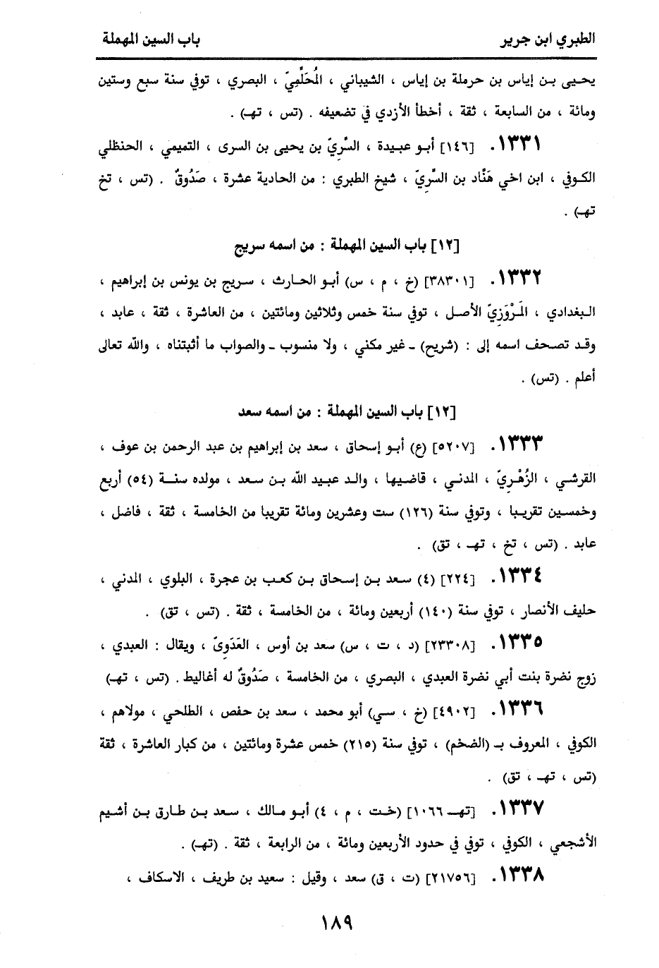 1331 - [146] أبو عبيدة، السري بن يحيى بن السري، التميمي، الحنظلي، الكوفي، ابن أخي هناد بن السري، شيخ الطبري، من الحادية عشرة، صدوق. (تس، تخ، تهـ).