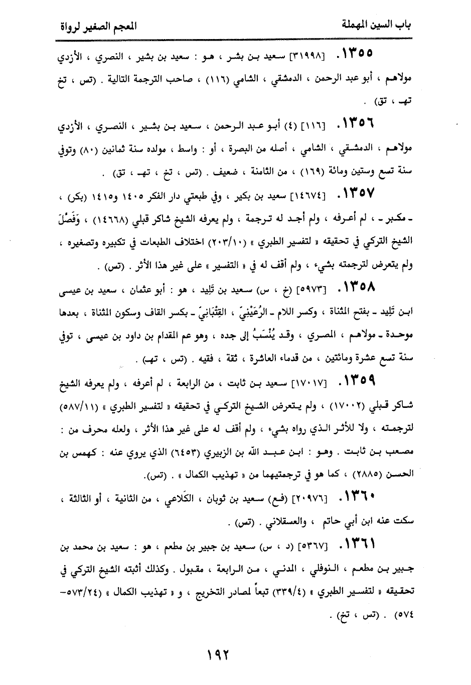 1355 - [31998] سعيد بن بشر، هو سعيد بن بشير، النصري، الأزدي، مولاهم، أبو عبد الرحمن، الدمشقي، الشامي (116)، صاحب الترجمة التالية. (تس، تخ، تهـ، تق).